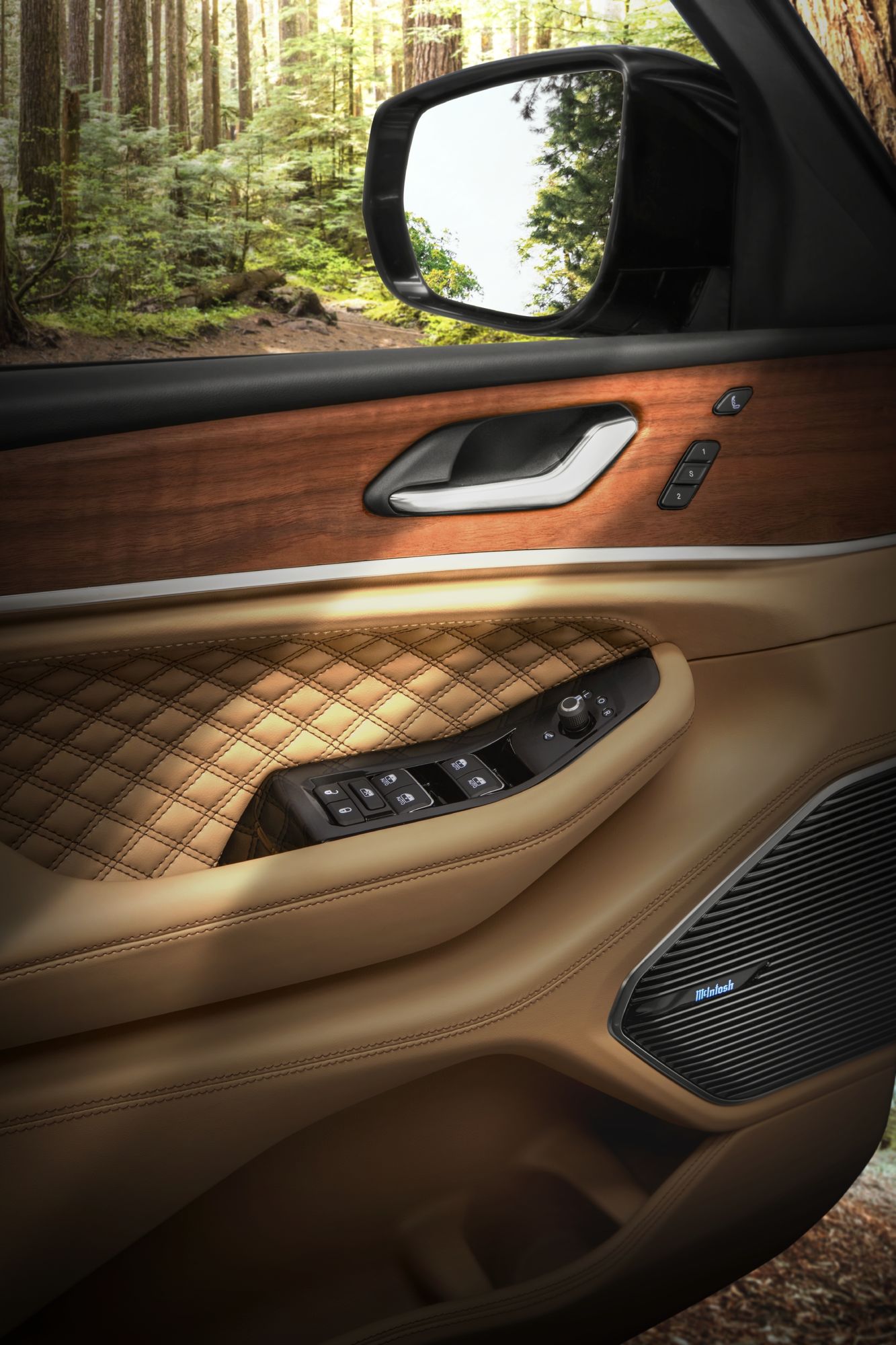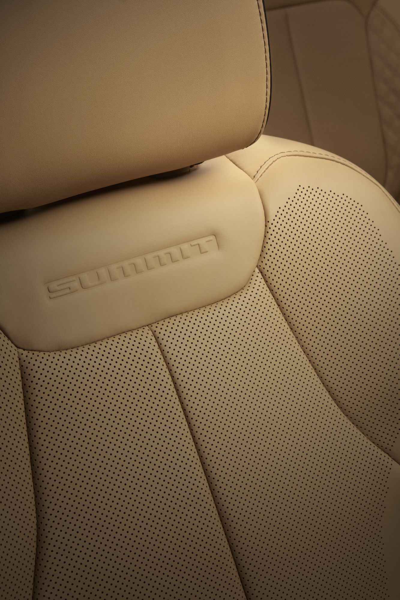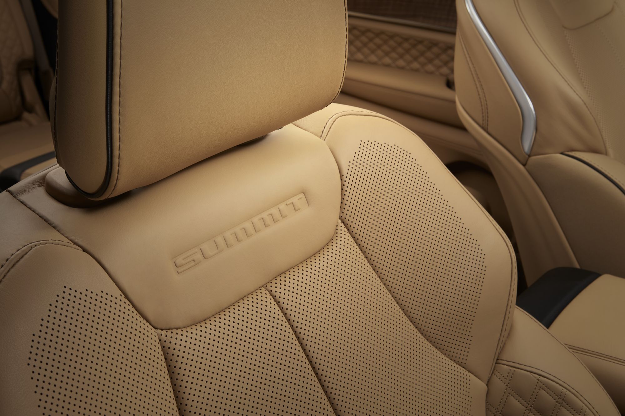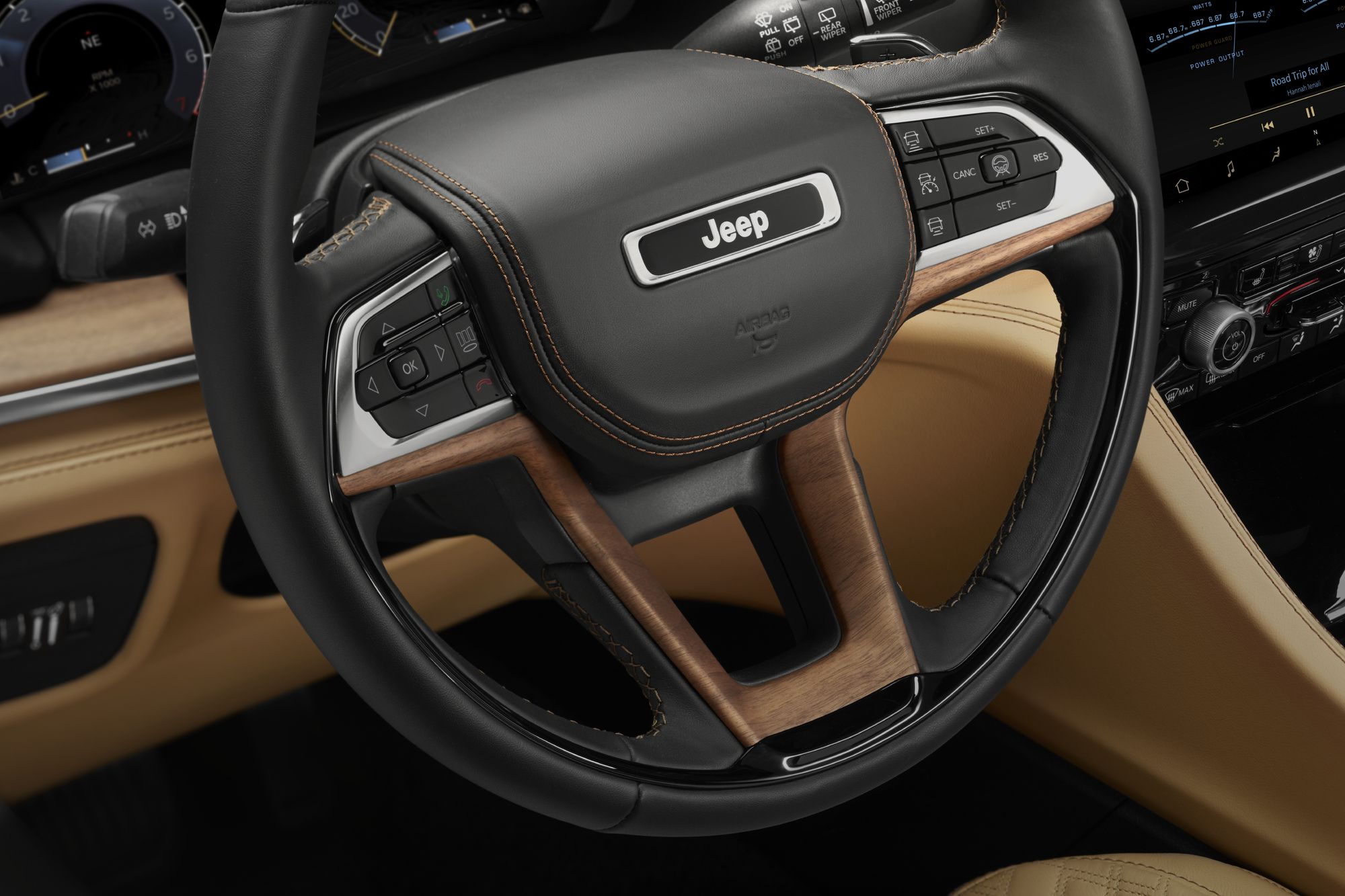 Продажи модели должны стартовать во втором квартале этого года. Для начала клиентам предложат пять комплектаций: Laredo, Limited, Overland, Summit, а также Summit Reserve. Последняя получит отделку салона кожей Palermo и вставками из орехового шпона. Второй ряд сидений тут оснащён вентиляцией, а внешне премиальную версию можно будет узнать по 21-дюймовым каткам — остальным положены колёса диаметром от 18 до 20 дюймов. Передние сиденья с вентиляцией и массажем, проекция на лобовое стекло, а также электропривод багажника с активацией ногой доступны, начиная с исполнения Overland. Панорамная крыша CommandView для него — также стандарт.