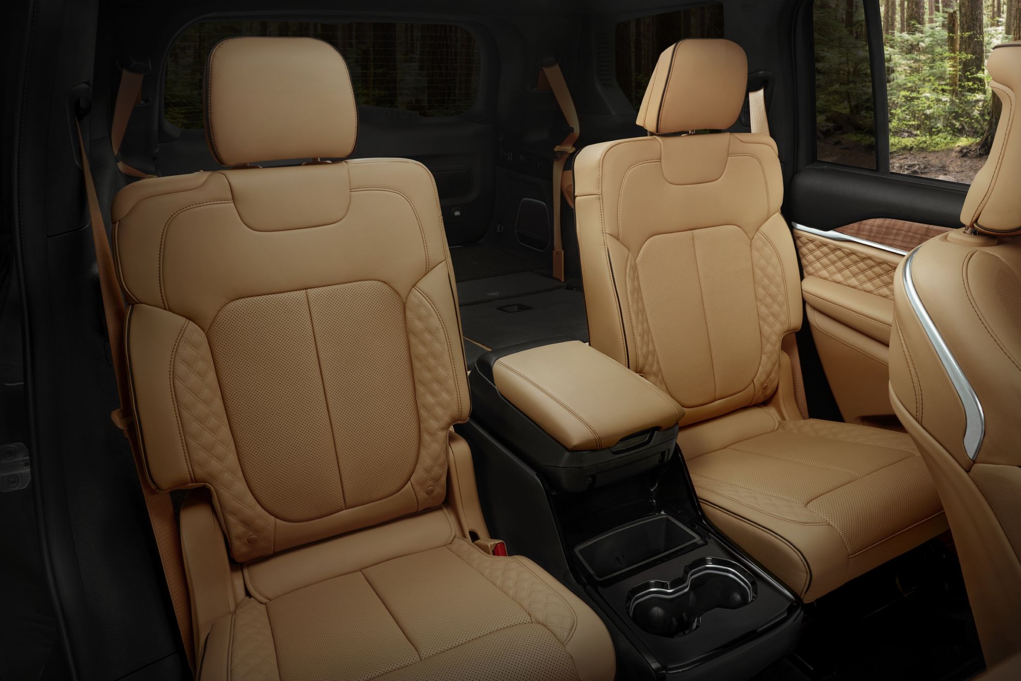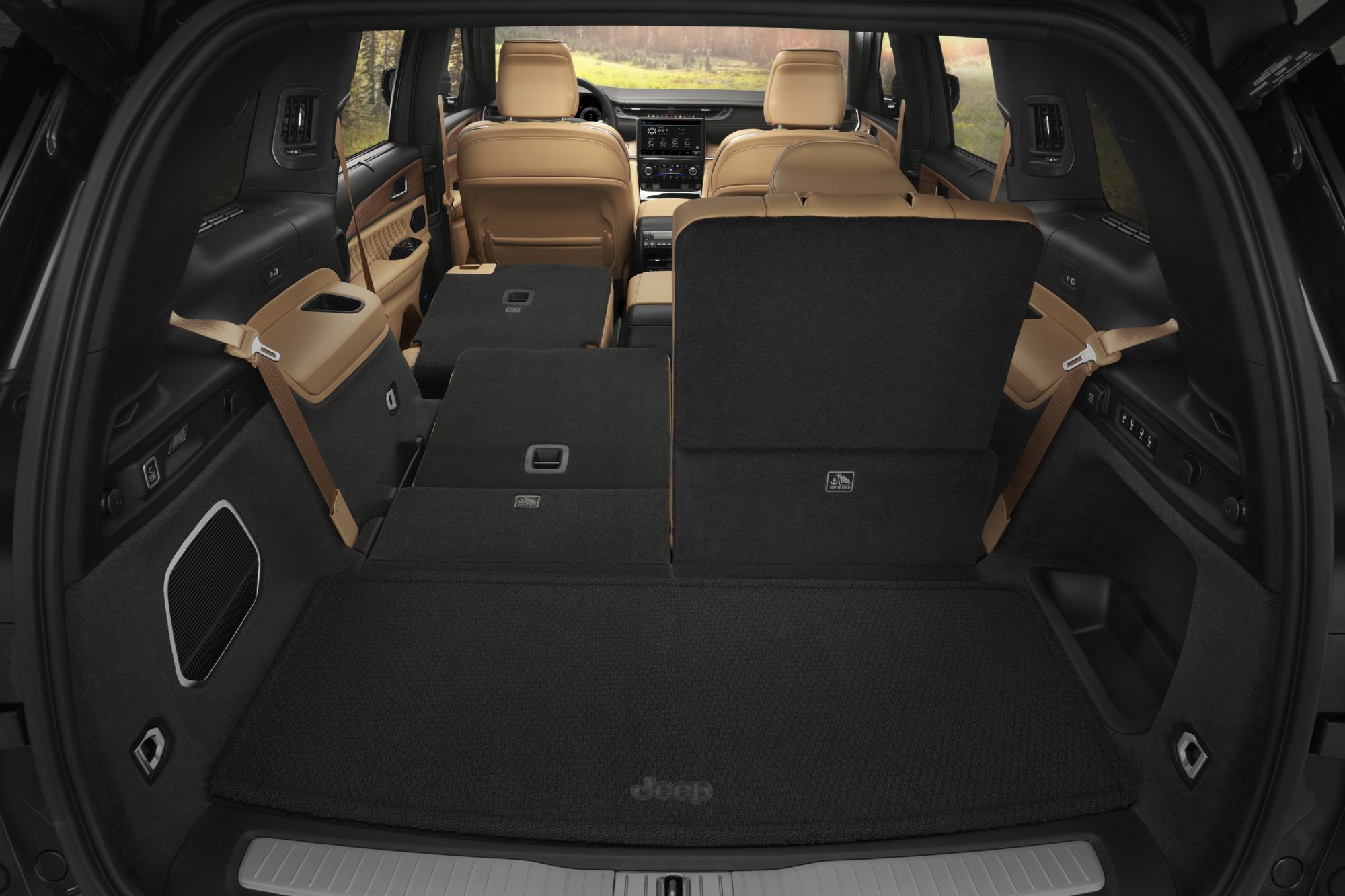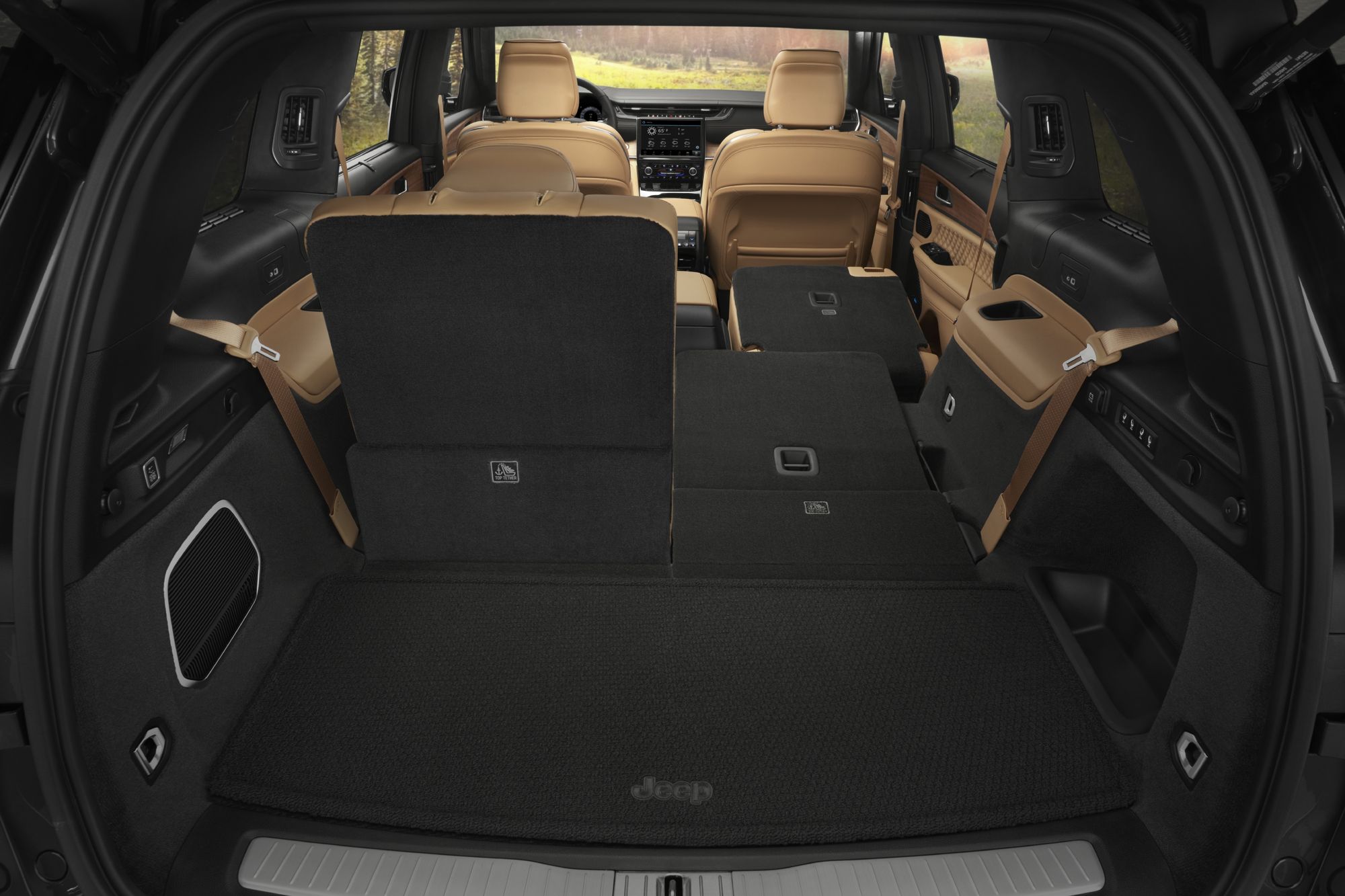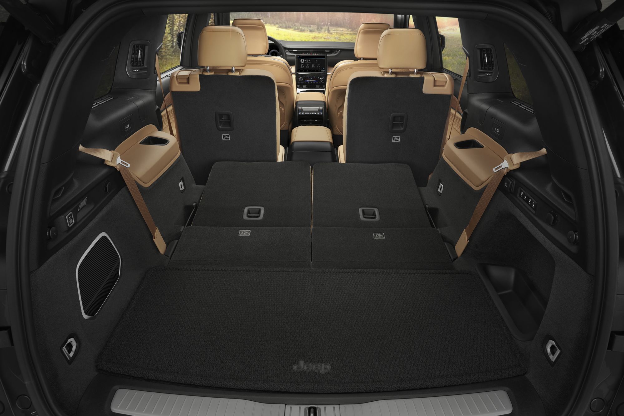 Продажи модели должны стартовать во втором квартале этого года. Для начала клиентам предложат пять комплектаций: Laredo, Limited, Overland, Summit, а также Summit Reserve. Последняя получит отделку салона кожей Palermo и вставками из орехового шпона. Второй ряд сидений тут оснащён вентиляцией, а внешне премиальную версию можно будет узнать по 21-дюймовым каткам — остальным положены колёса диаметром от 18 до 20 дюймов. Передние сиденья с вентиляцией и массажем, проекция на лобовое стекло, а также электропривод багажника с активацией ногой доступны, начиная с исполнения Overland. Панорамная крыша CommandView для него — также стандарт.